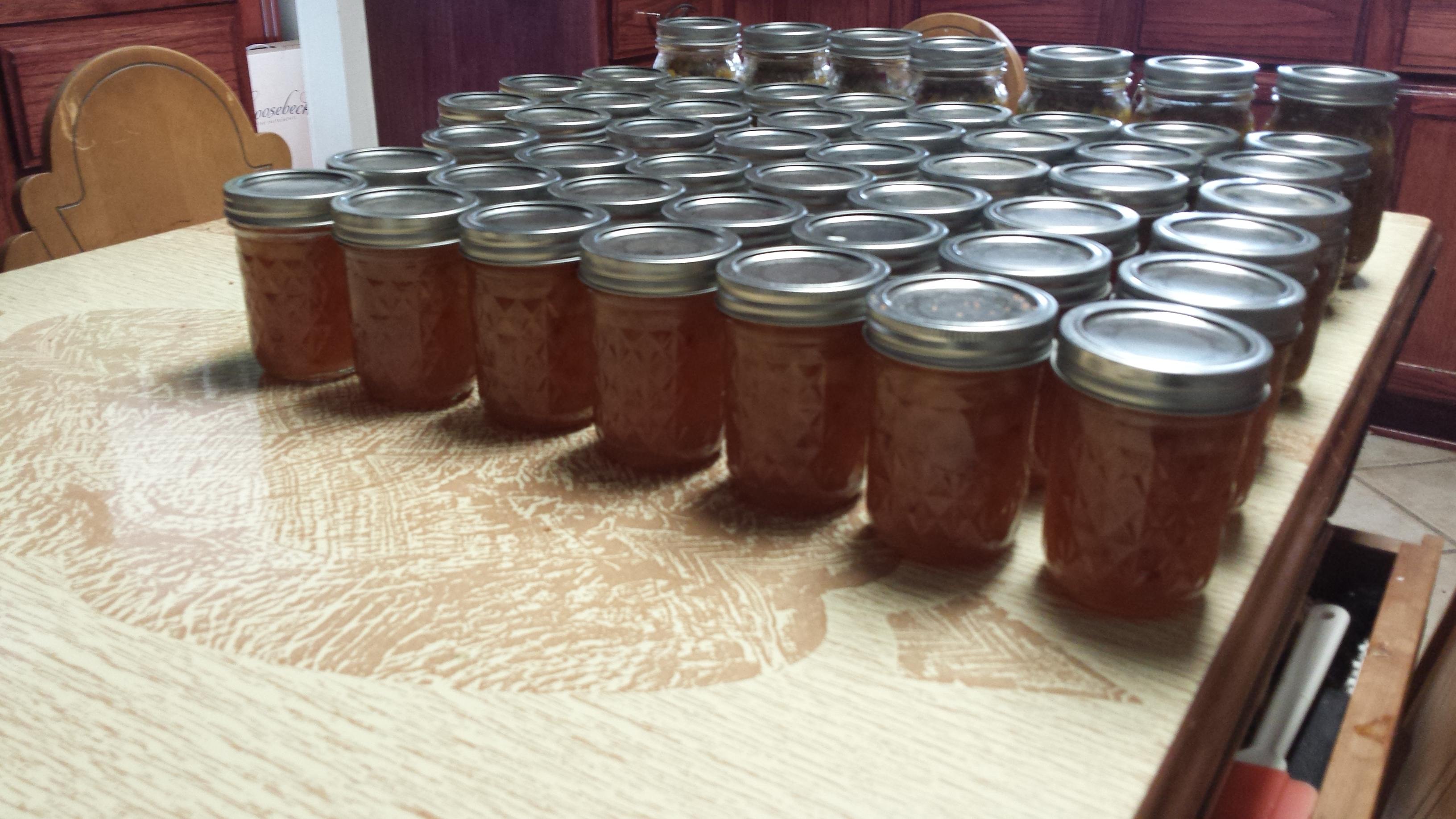 At the end of the day I had 24 half pints of relish, 8 pints of relish, and 21 half pints of jam.